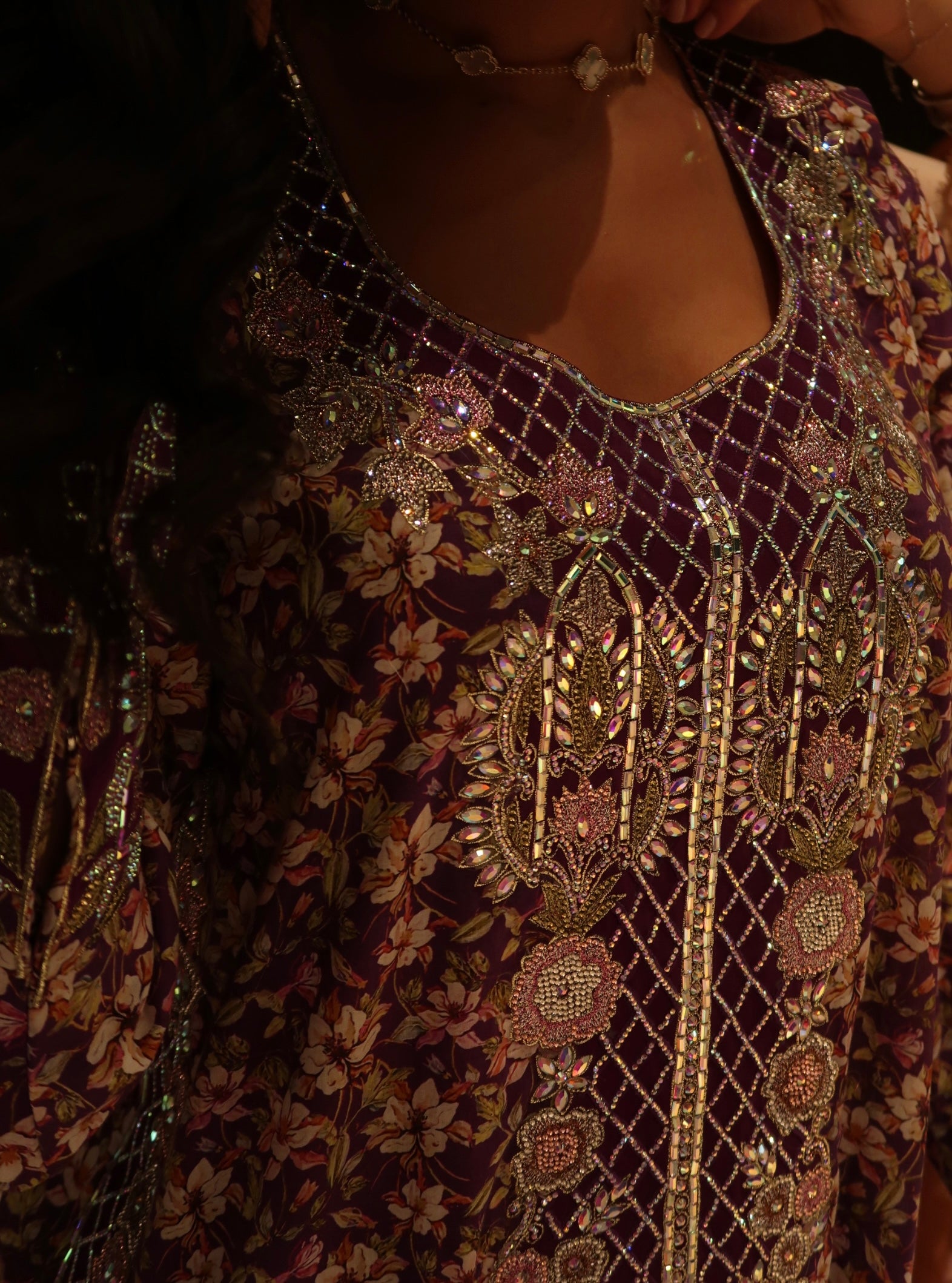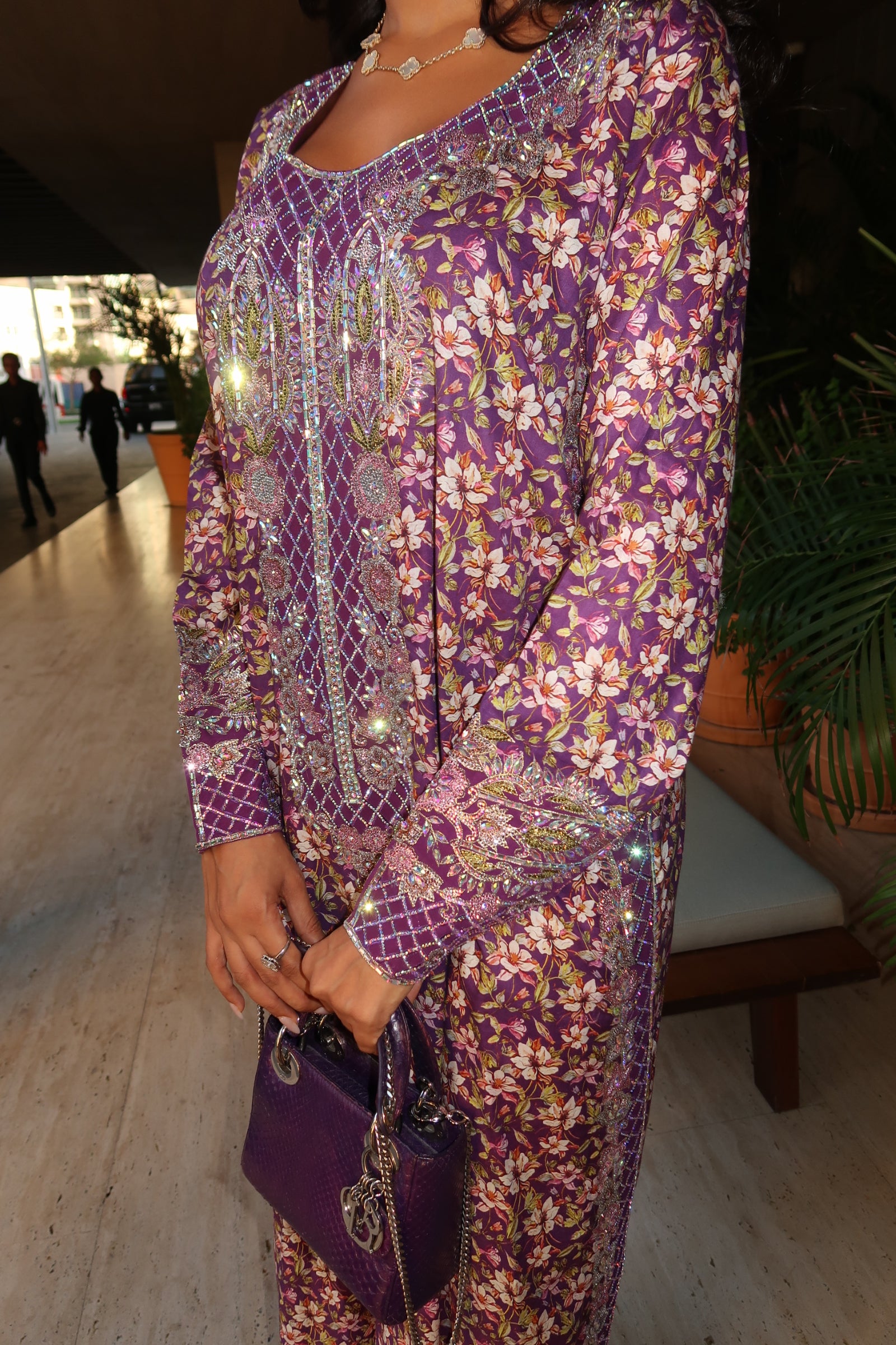 100% cotton with rich purple tones, floral embroidery, and sparkling accents for effortless elegance.